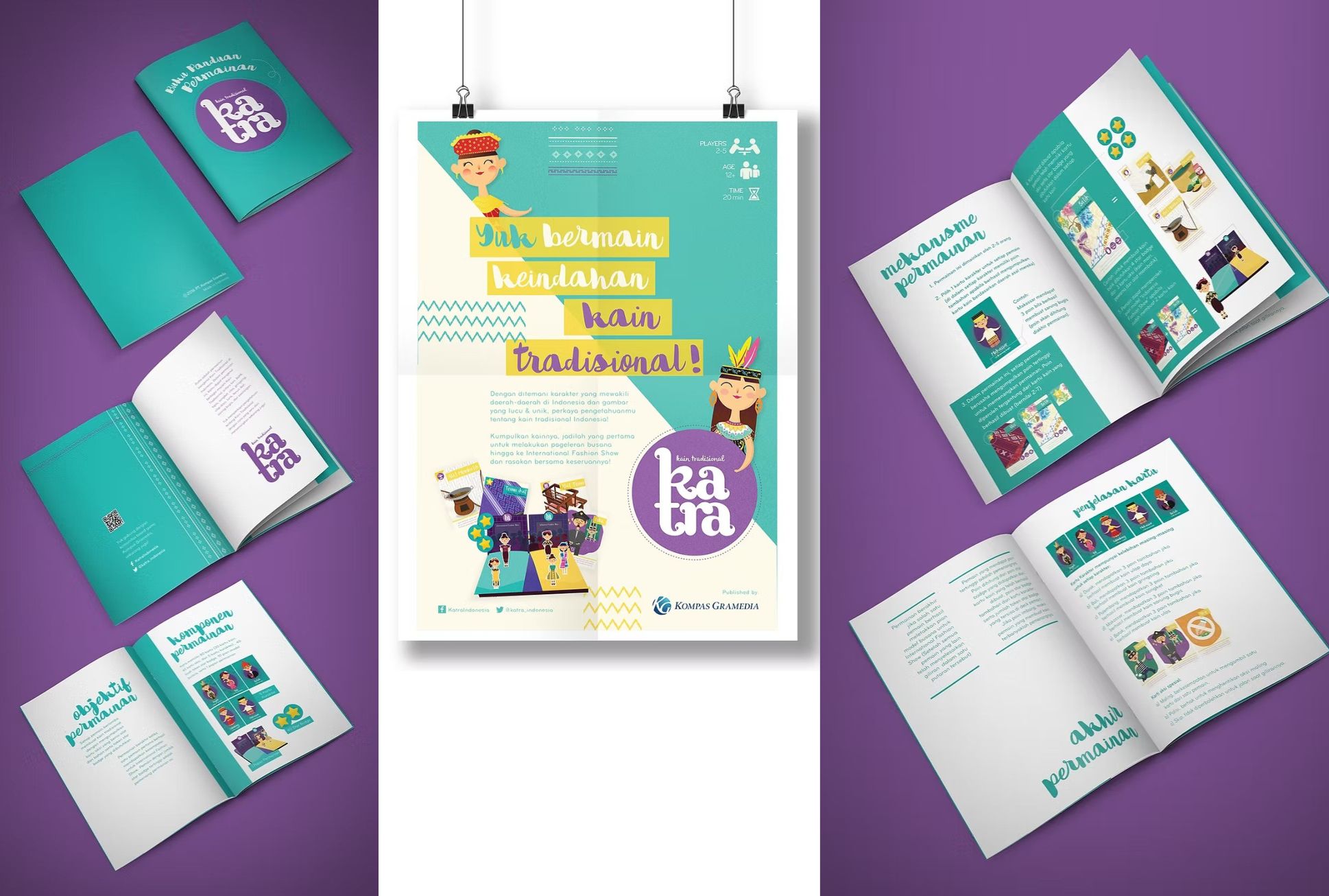 Developed in 2016, Katra is a board game that introduces Indonesian traditional fabrics to a younger audience during the rise of board game culture among young urban audiences. The project features a custom illustrations with fun and modern visual style. It challenges outdated perceptions of traditional culture while highlighting the beauty of Indonesian textiles.
